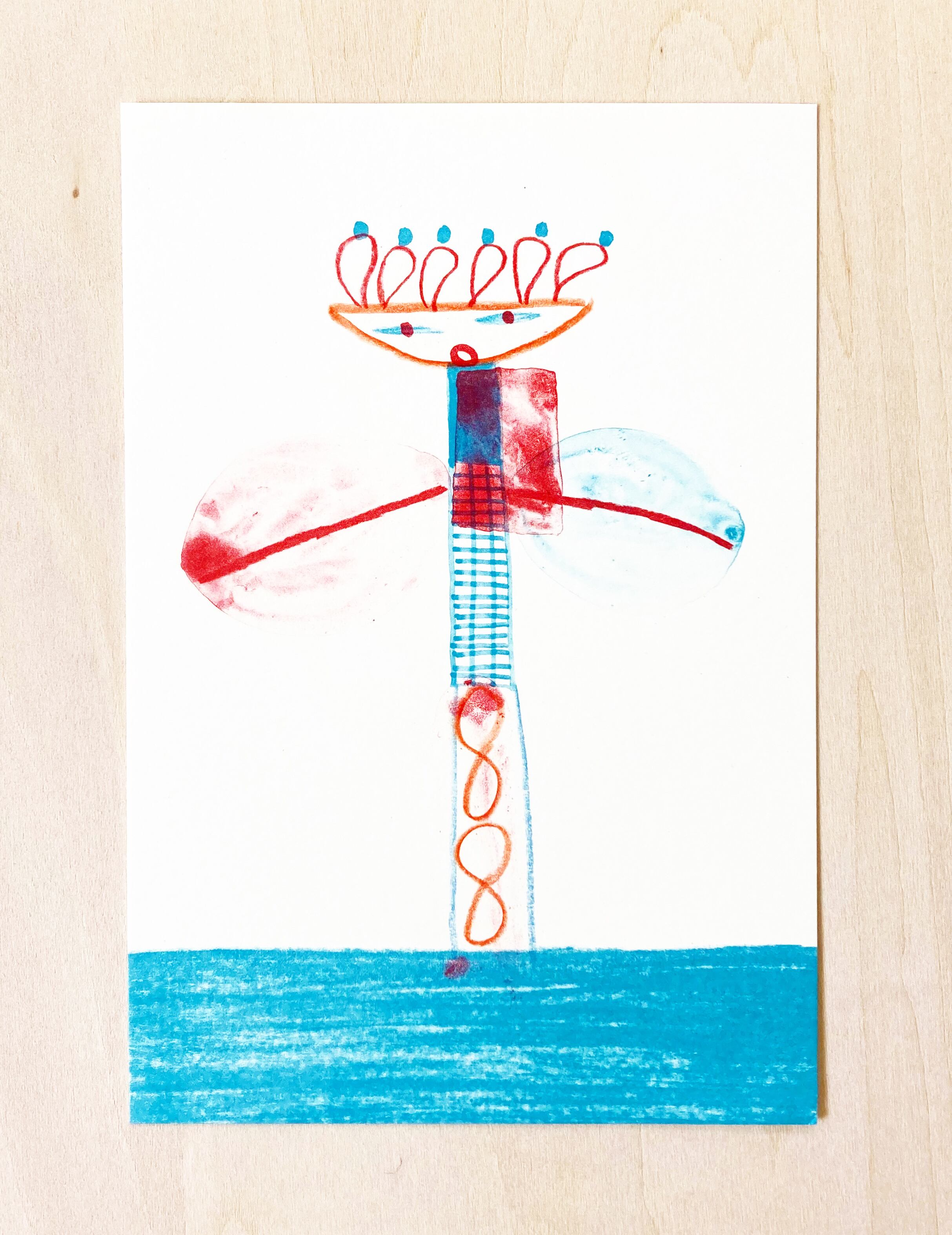 赤色と水色のインク2色で印刷しました。